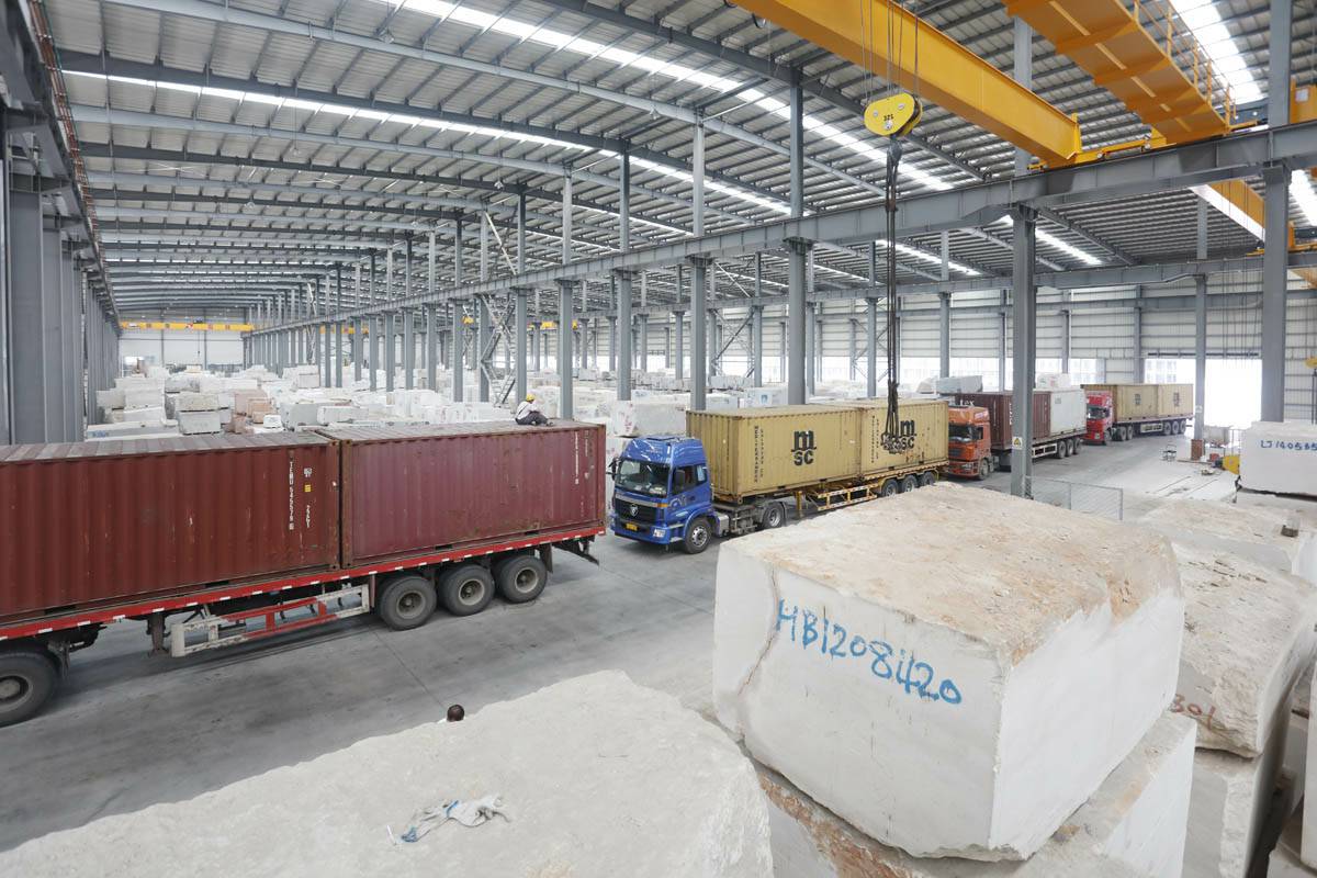 新澳门京葡·(中国)官方网站采用世界先进的环保理念打造超大型室内荒料场。该荒料场实际面积为